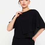 Modern tasarımın zarafetle buluştuğu bu bluz, asimetrik kesim detaylarıyla göz alıcı bir görünüm sunuyor. Üst kısmındaki asimetrik çizgiler, dinamik bir stil oluştururken, çan kesimi silüetinizi nazikçe vurguluyor. İnce ve kaliteli kumaşı sayesinde gün boyu konforlu bir kullanım sağlayan bu parça, hem iş hayatında hem de özel davetlerde şıklığınızı tamamlayacak. Minimal detaylarla öne çıkan bu bluz, gardırobunuzun vazgeçilmez parçalarından biri olmaya aday.
