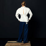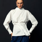 Gardırobunuza modern bir dokunuş katacak Asimetrik Kesim Beyaz Bluz, hem şıklığı hem de konforu bir arada sunar. Yapılandırılmış silueti, yüksek yakası ve asimetrik detayları ile dikkat çeken bu bluz, her kombine sofistike bir hava katar.