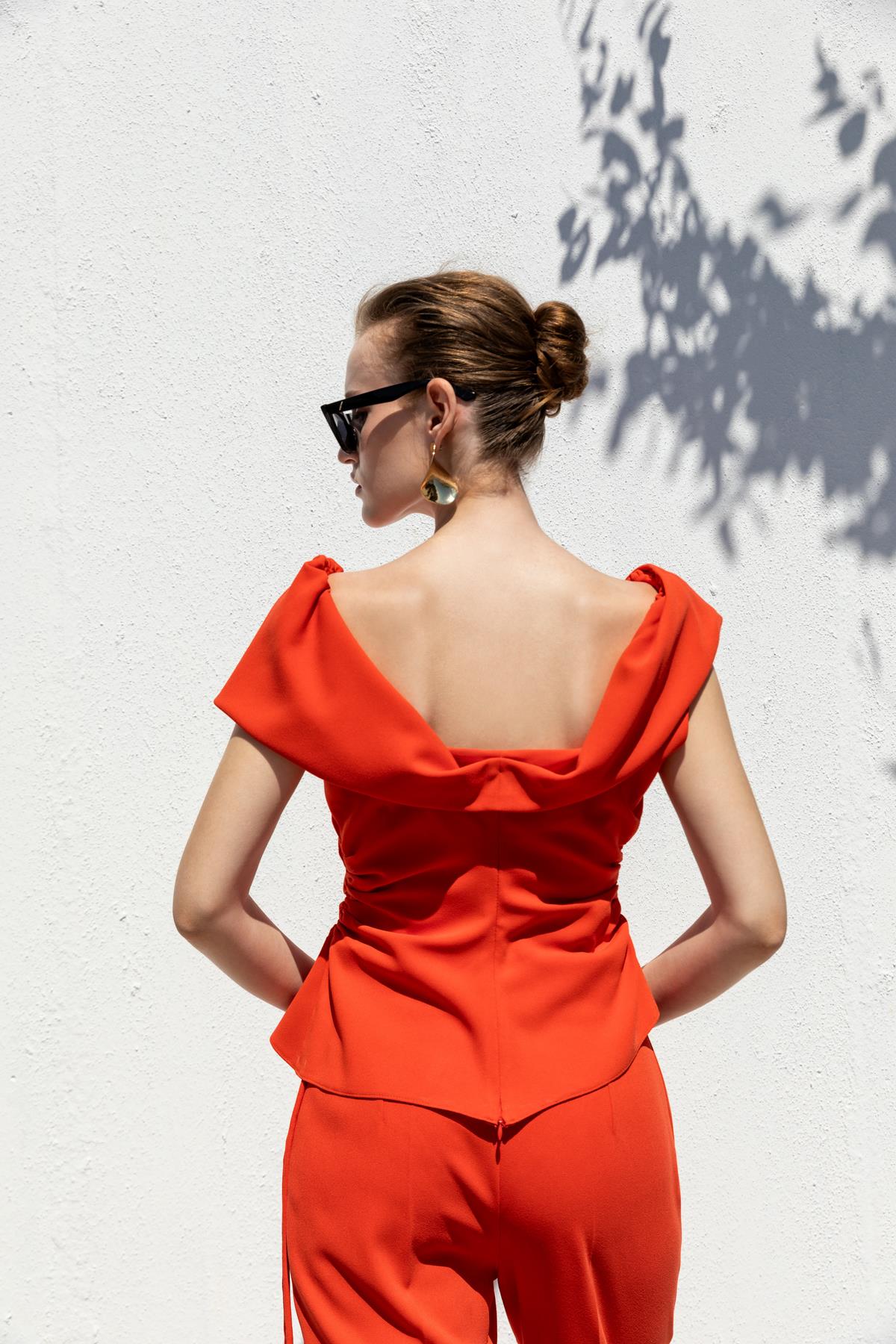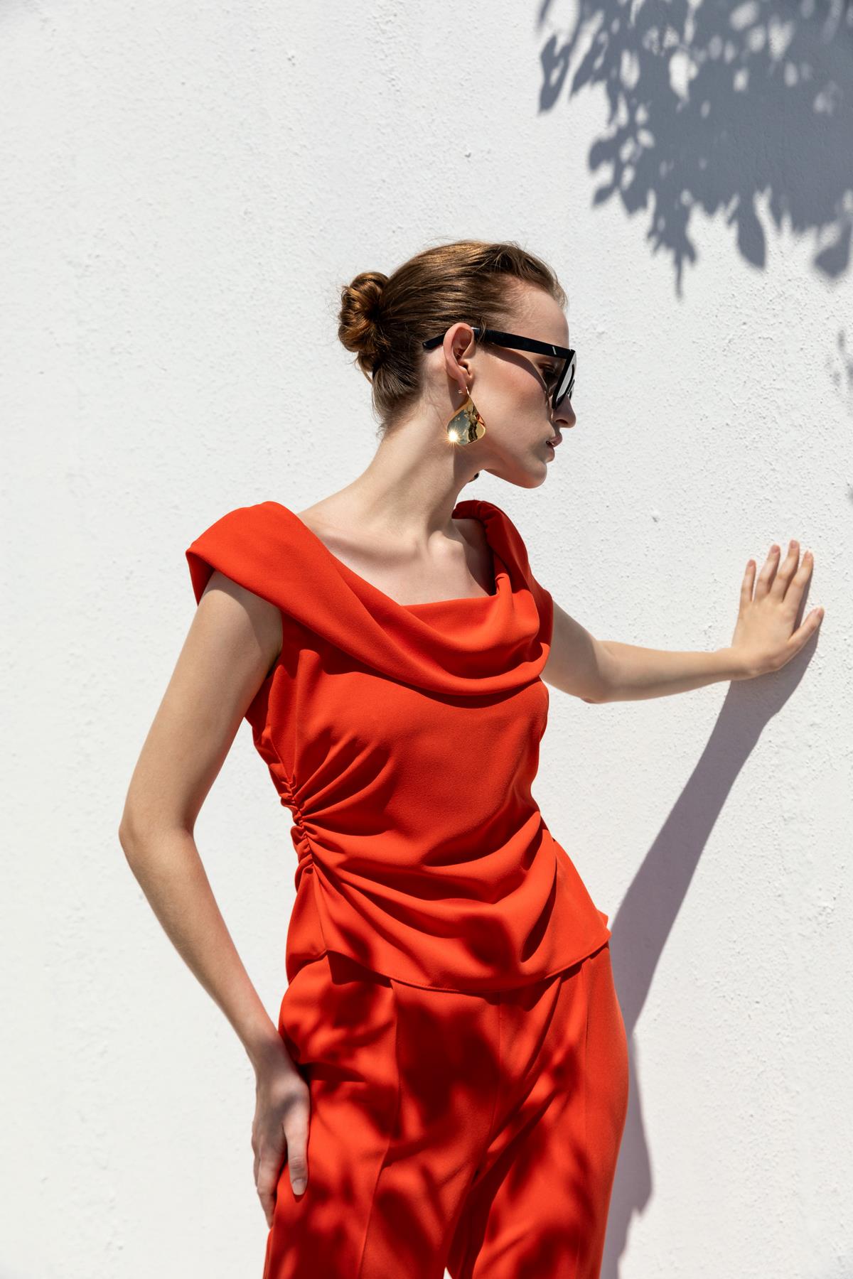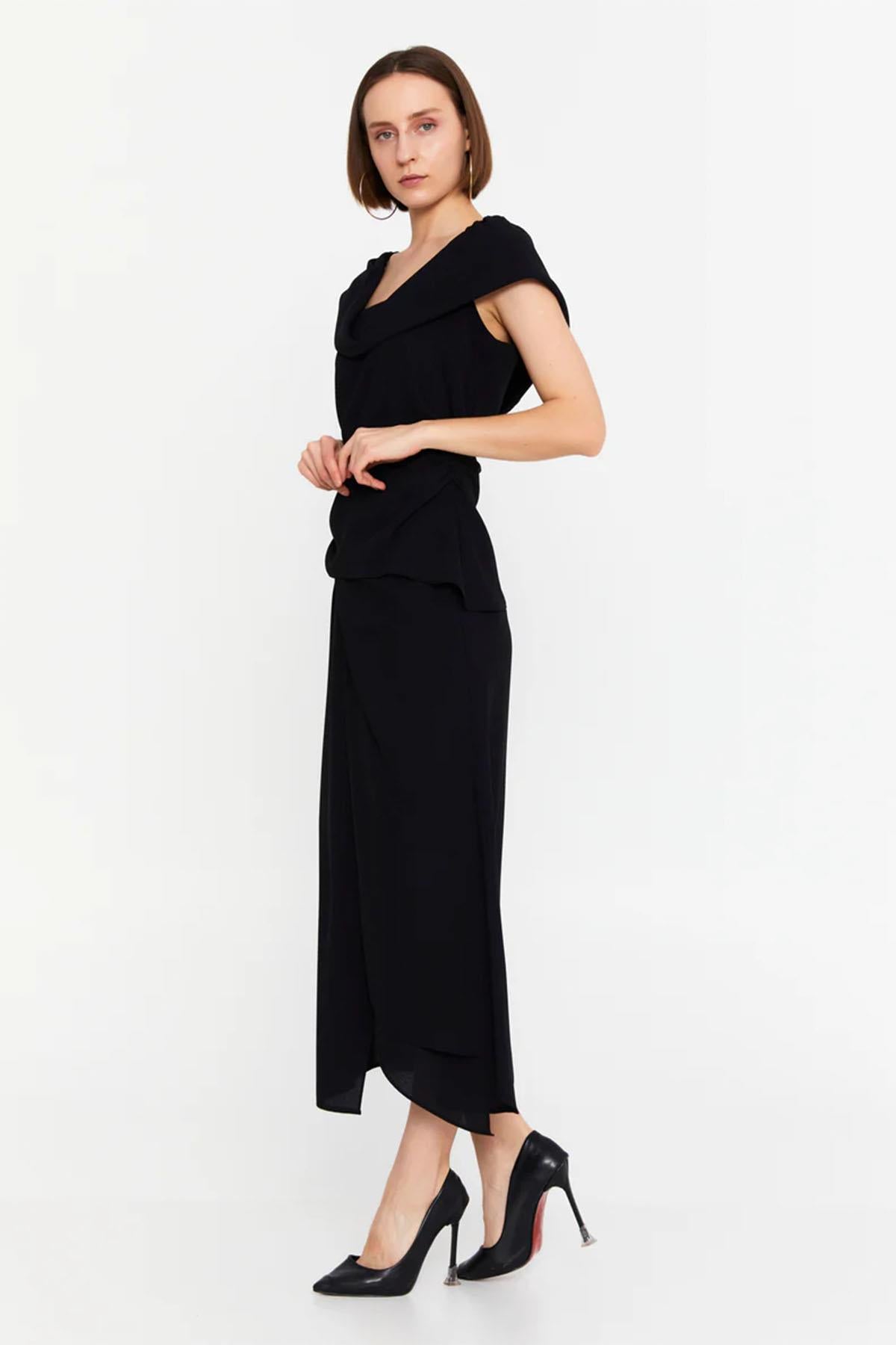 DRAPELİ DEGAJE YAKA BLUZ 25S10726