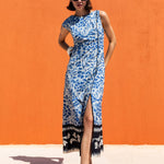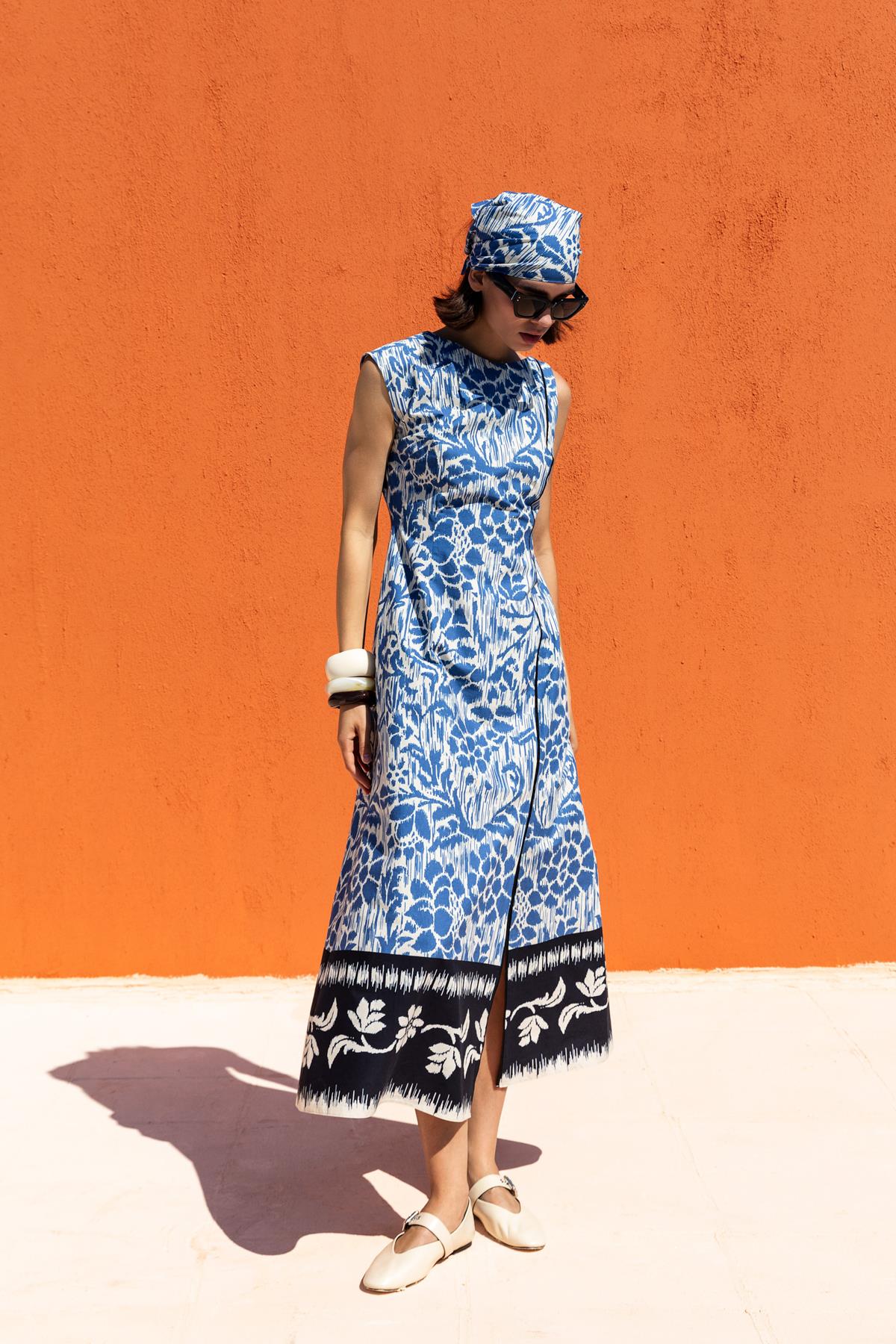 ÇİÇEK DESENLİ YIRTMAÇLI ELBİSE 25S40715