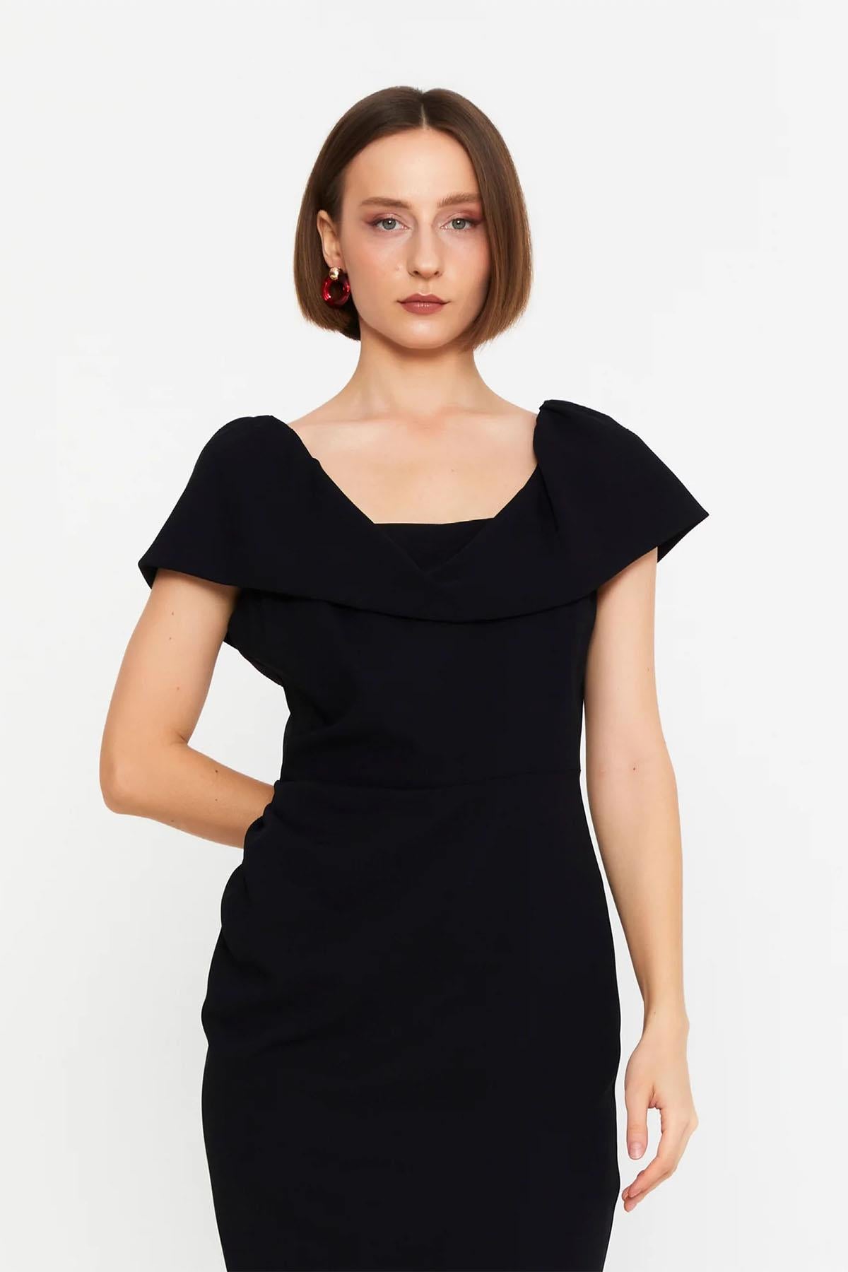 DEGAJE YAKA YIRTMAÇLI ELBİSE 25S40706