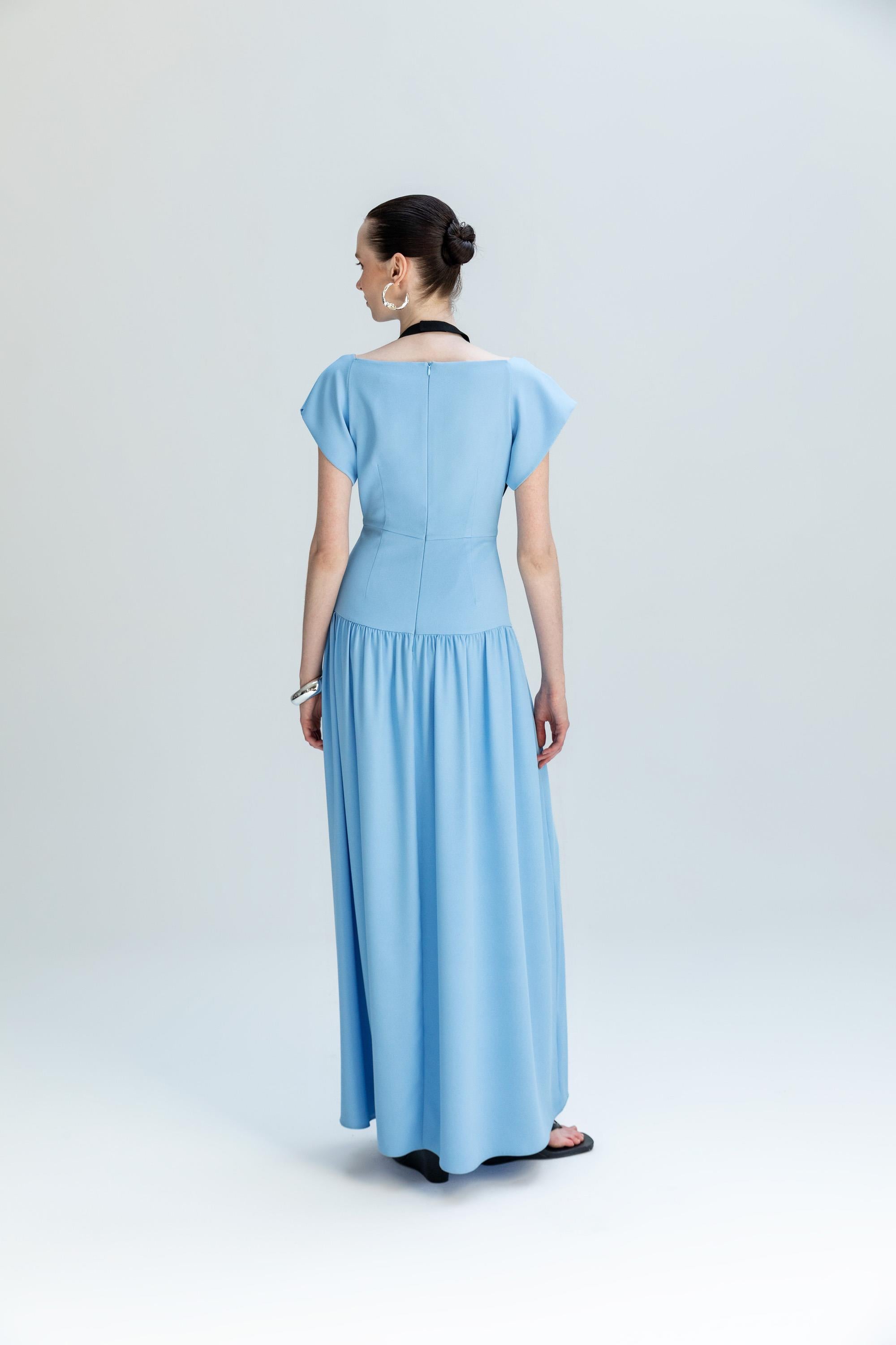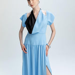 KONTRAST YAKA DETAYLI MAXİ ELBİSE