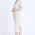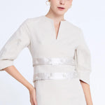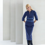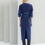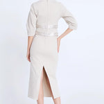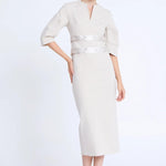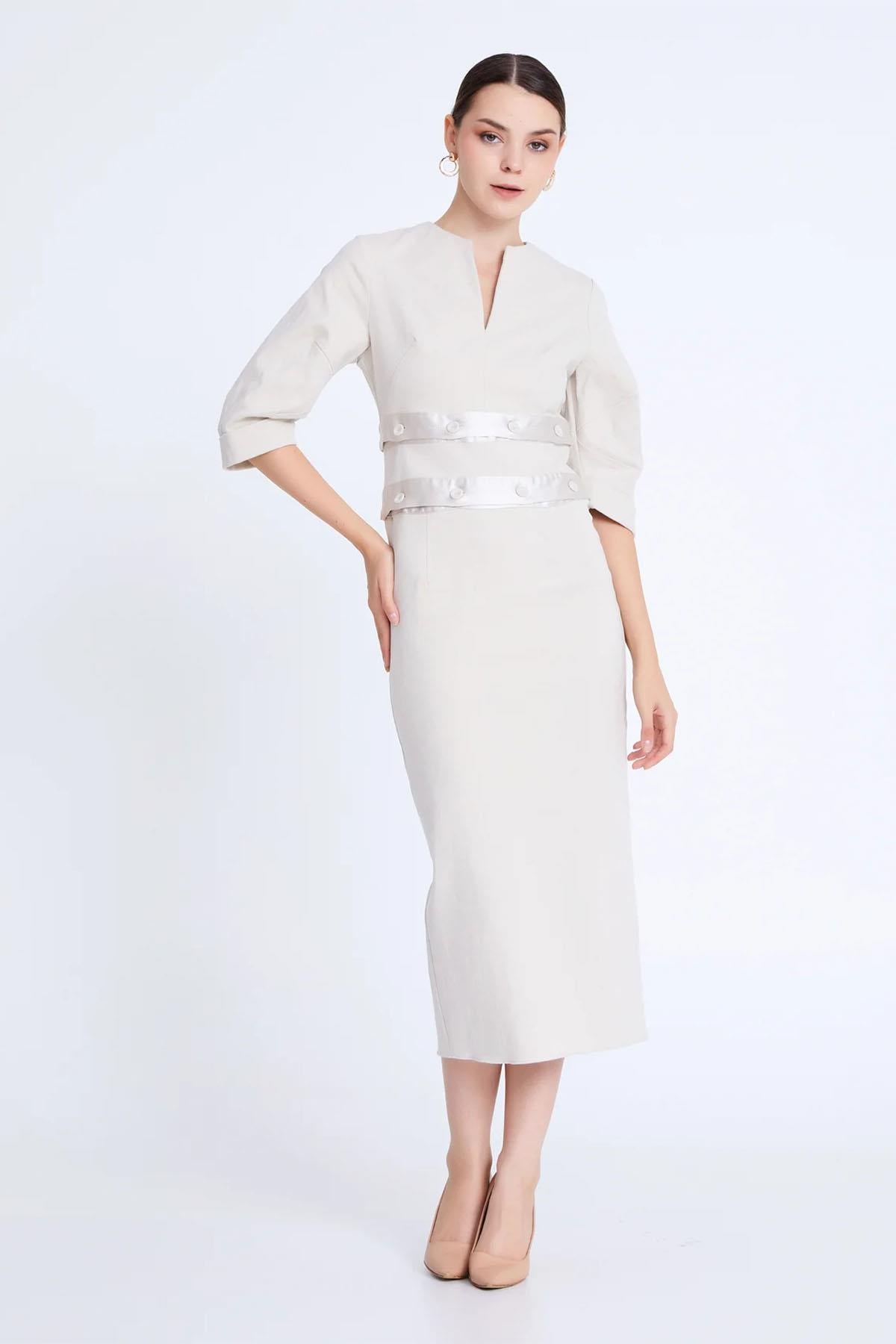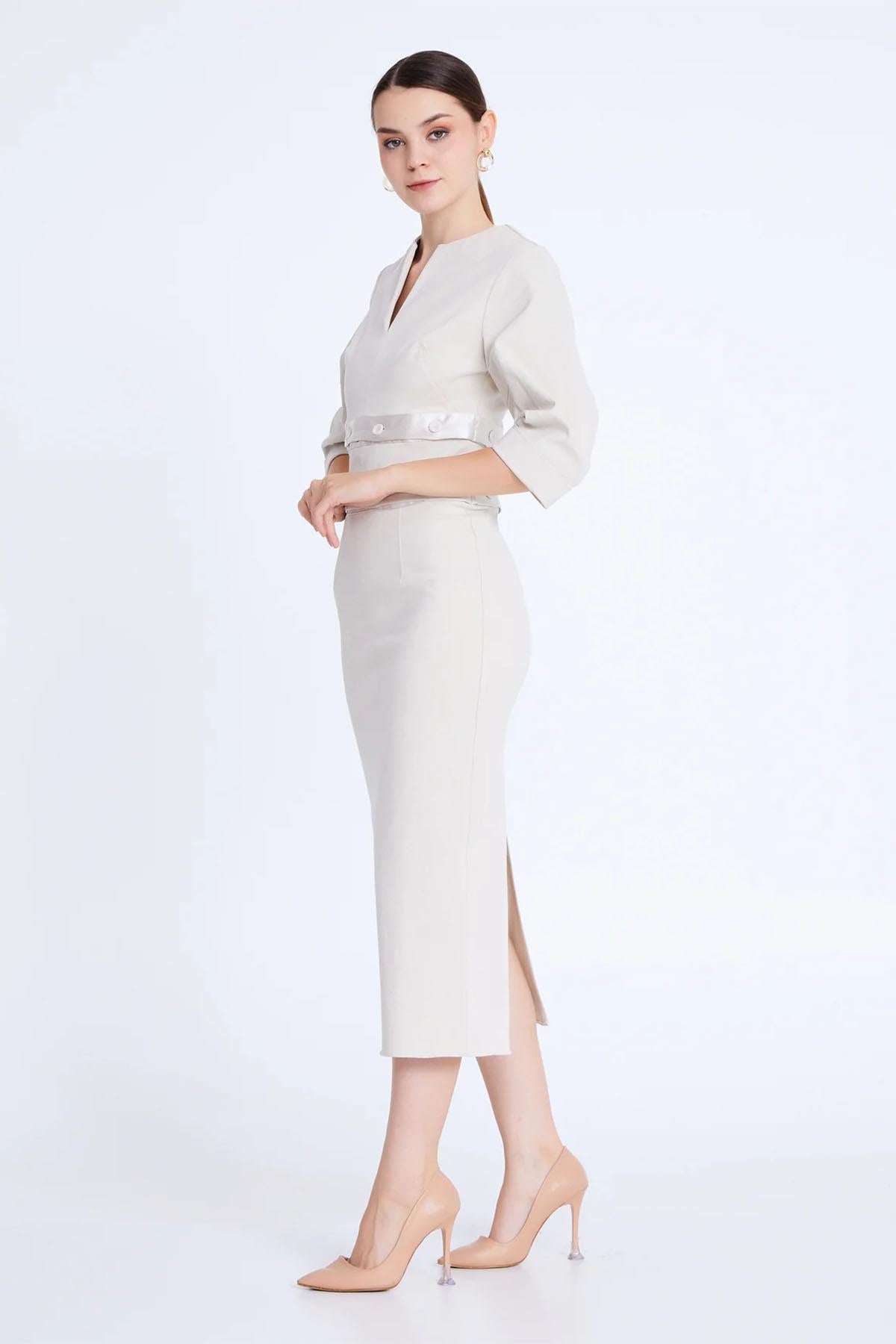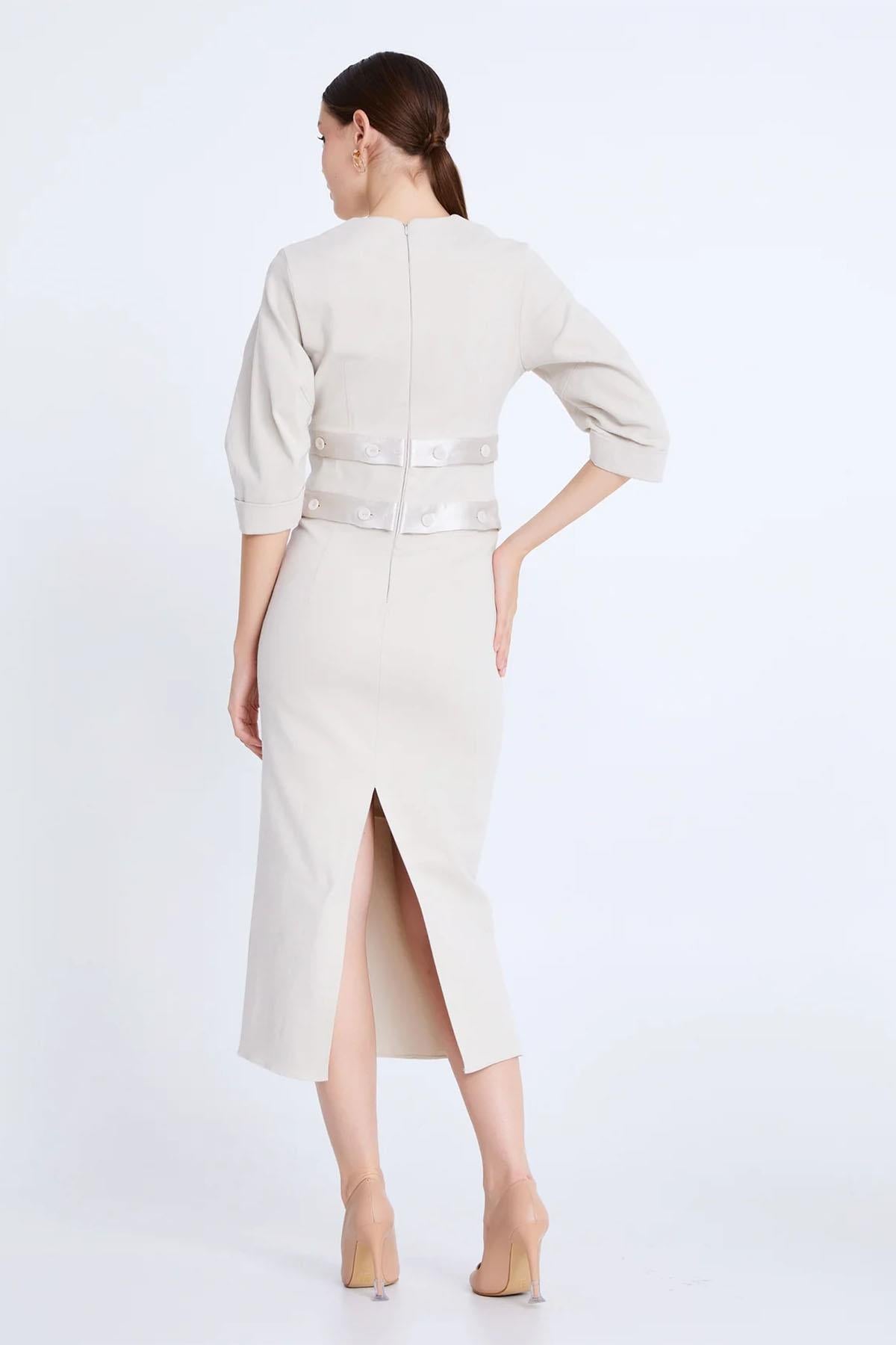 KUŞAKLI YIRTMAÇLI MİDİ ELBİSE 25W40658