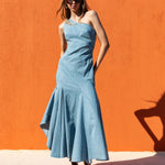 Denim şıklığını modern detaylarla buluşturan Tek Omuz Denim Elbise, asimetrik kesimiyle cesur ve şık bir stil sunuyor. Tek omuz tasarımıyla dikkat çeken bu model, feminen siluetinizi ön plana çıkarırken, kaliteli denim kumaşı sayesinde gün boyu konfor sağlıyor. Günlük kombinlerden özel davetlere kadar geniş bir kullanım alanına sahip olan elbise, topuklu ayakkabılarla şık, sneakerlarla ise casual bir görünüm oluşturmanıza yardımcı olur.