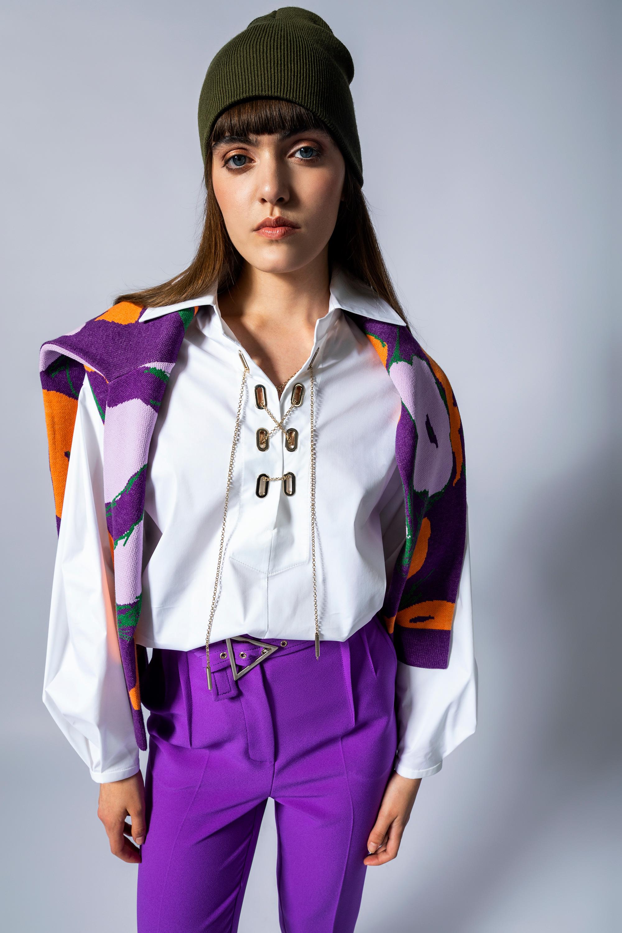 Kameya'nın şık ve modern tasarımı olan metal aksesuarli pileli pantolon ile stilinize özgün bir dokunuş katın. Pileli tasarımı, hareket özgürlüğü sunarken, metal aksesuar detayları pantolonunuza zarif bir görünüm kazandırır. Yüksek kaliteli kumaşı sayesinde hem günlük kullanımda hem de özel etkinliklerde rahatlıkla tercih edebileceğiniz bu pantolon, her kombinle mükemmel uyum sağlar.