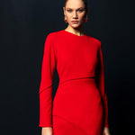 Zarafeti minimal bir formda sunan asimetrik detaylı elbise, modern çizgisiyle dikkat çeker. Bel kısmındaki asimetrik dikiş detayı, vücut hatlarını zarifçe vurgularken dinamik bir siluet oluşturur. Yumuşak dokulu kumaşıyla konforlu bir kullanım sağlar; özel davetlerden şehir akşamlarına kadar her ortamda çarpıcı bir şıklık sunar.