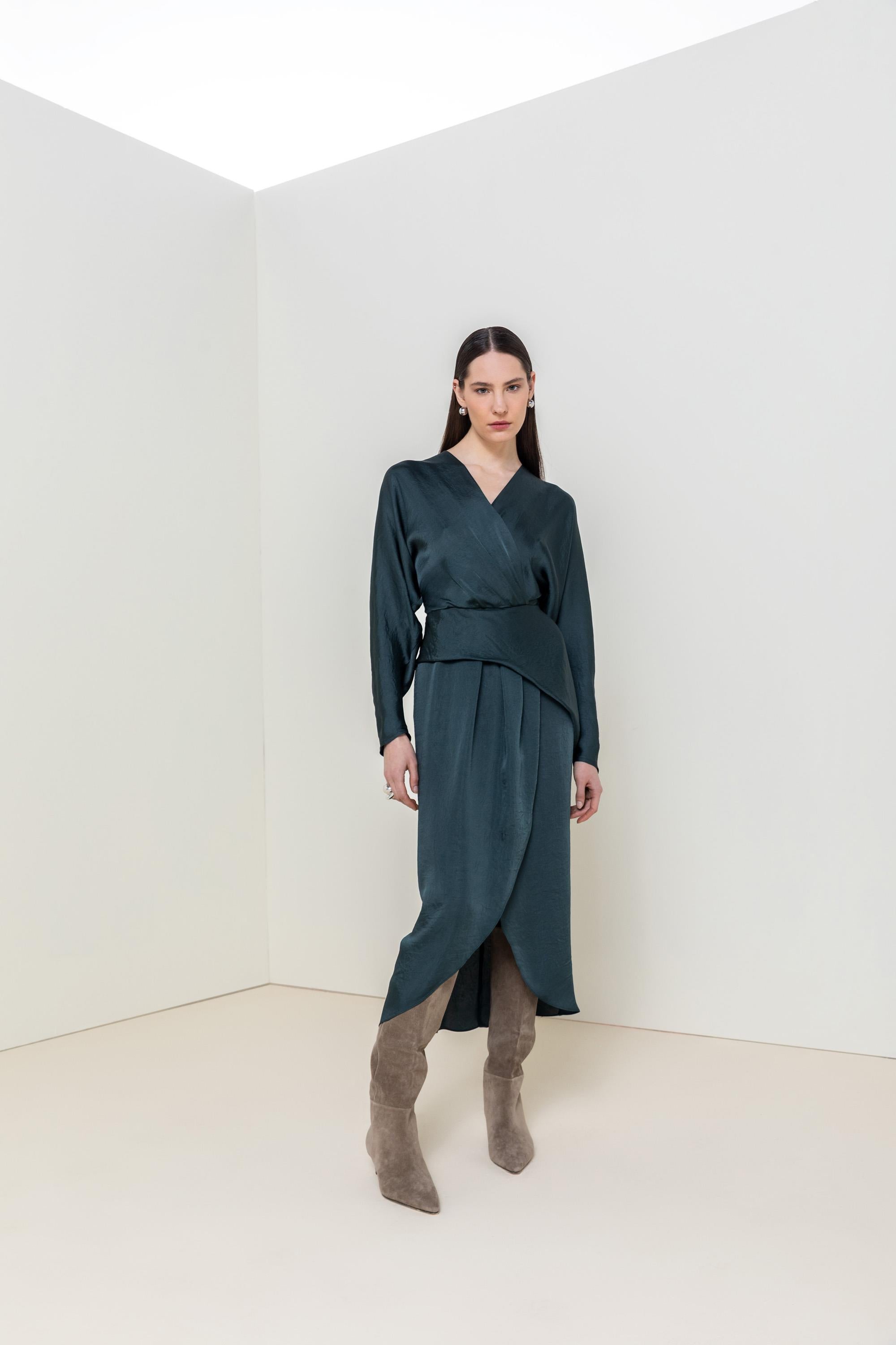 Zarif ve feminen tasarımıyla öne çıkan drapeli uzun elbise, dökümlü detaylarıyla sofistike bir görünüm sunar. Özel günlerde ve davetlerde şıklığınızı tamamlayan bu drapeli uzun elbise, rahat kesimiyle gün boyu konfor sağlar. Gardırobunuzun zamansız parçalarından biri olacak.