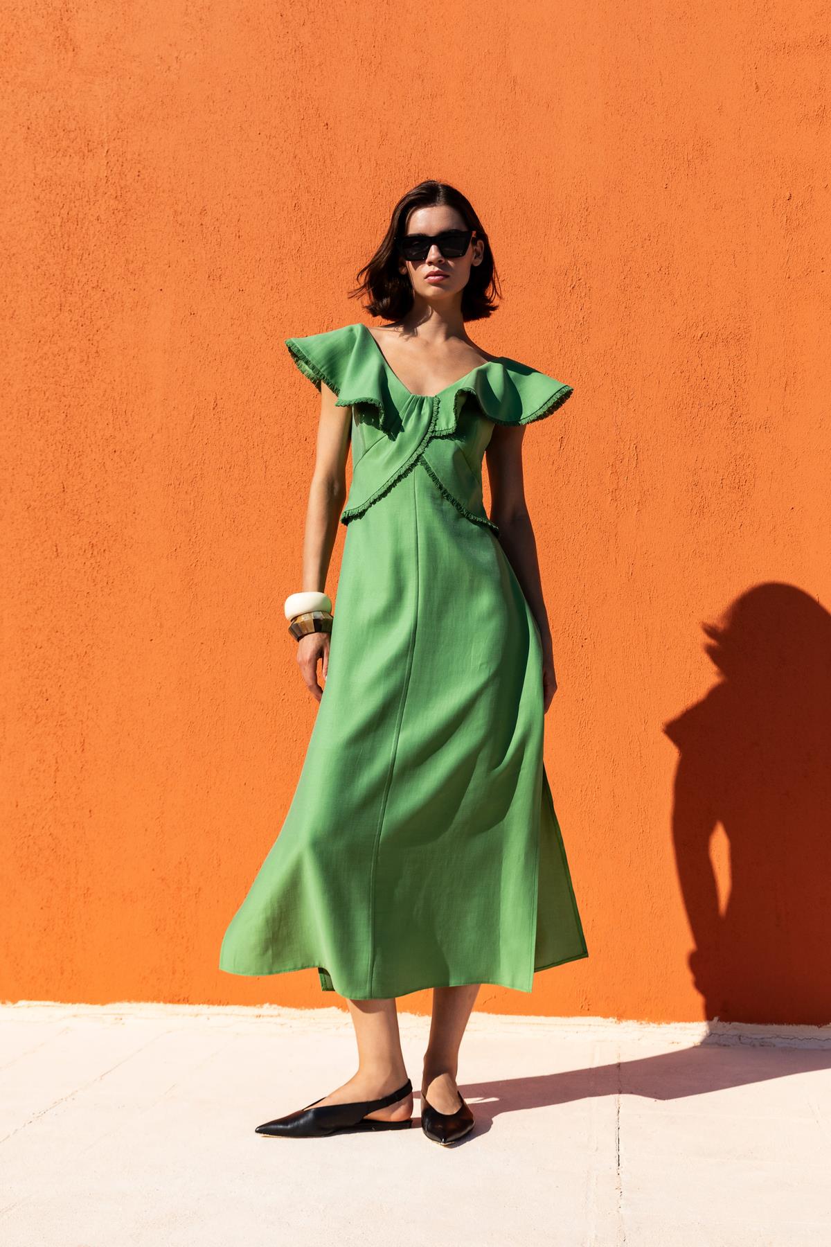 The flounce dress offers an energetic look with its lively and dynamic cuts. You can achieve a feminine style by combining these dresses, which can be preferred in daily life or for special occasions, with simple accessories and high-heeled shoes. Flounce details complete your elegance by emphasizing the lively structure of the dress.