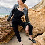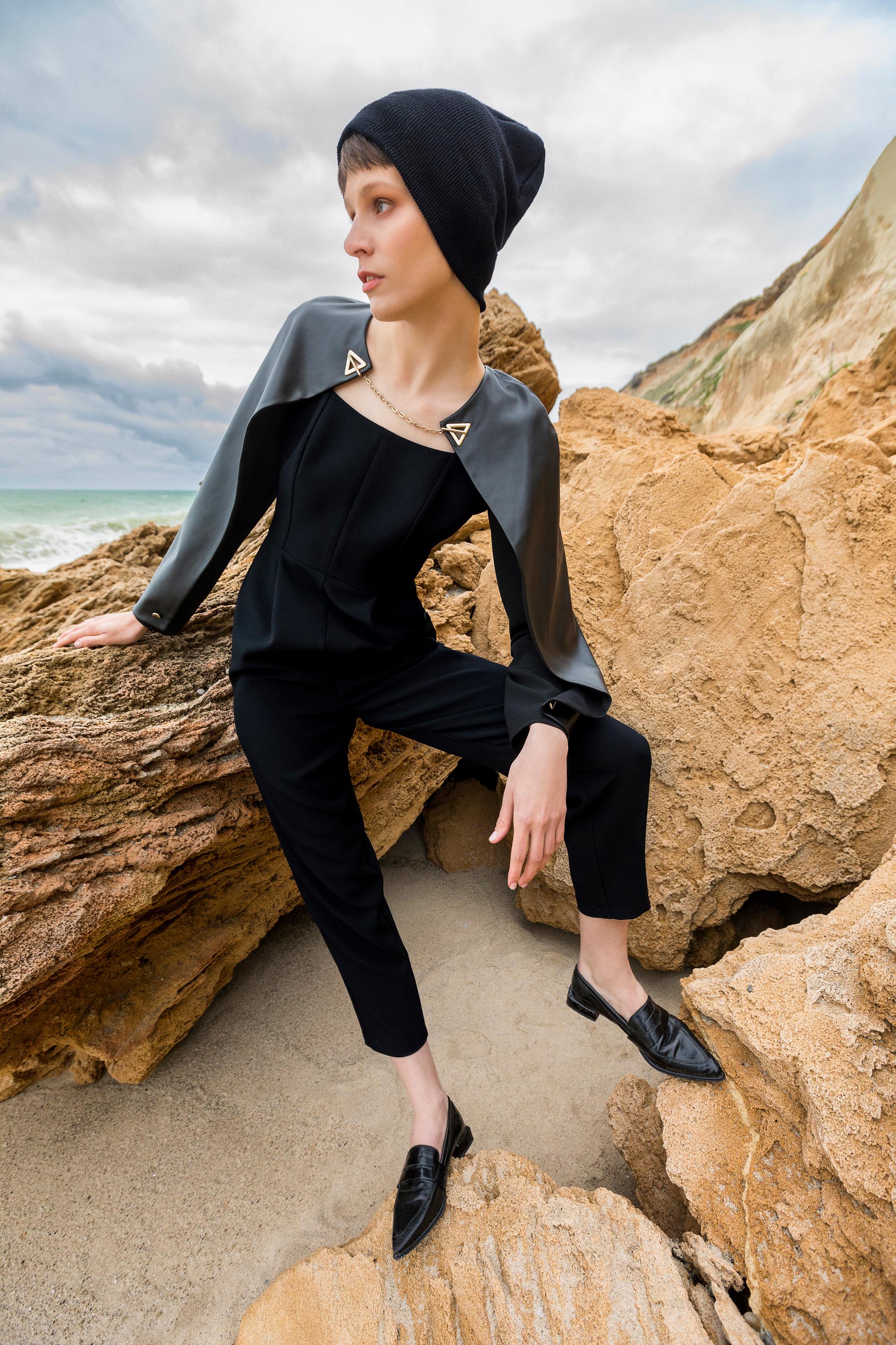Add a bold touch to your style with Kameya's modern and stylish leather-collared jumpsuit. The leather collar adds a sophisticated look while elegantly highlighting your figure. Its high-quality fabric and relaxed cut make it a stylish statement for both everyday wear and special occasions.