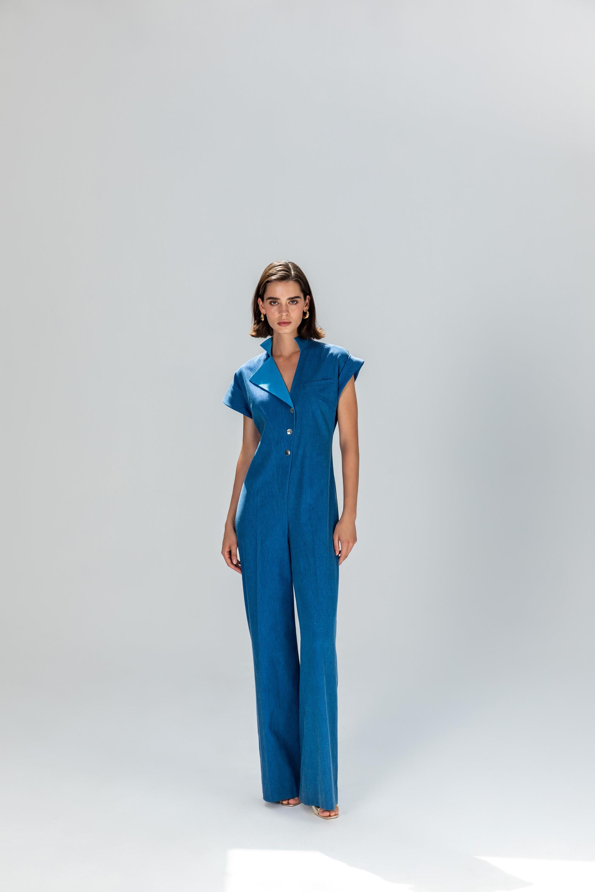 Zarif ve modern detaylarıyla öne çıkan Gümüş Düğmeli Tulum, şıklığı ve konforu bir arada sunuyor. Ön kısmındaki gümüş düğme detayları, tuluma sofistike bir hava katarken, akıcı kesimi sayesinde gün boyu rahat bir kullanım sağlıyor. Hem özel davetlerde hem de günlük kombinlerde rahatlıkla tercih edilebilecek bu model, topuklu ayakkabılarla şık, sneakerlarla ise casual bir görünüm oluşturmanızı sağlar.