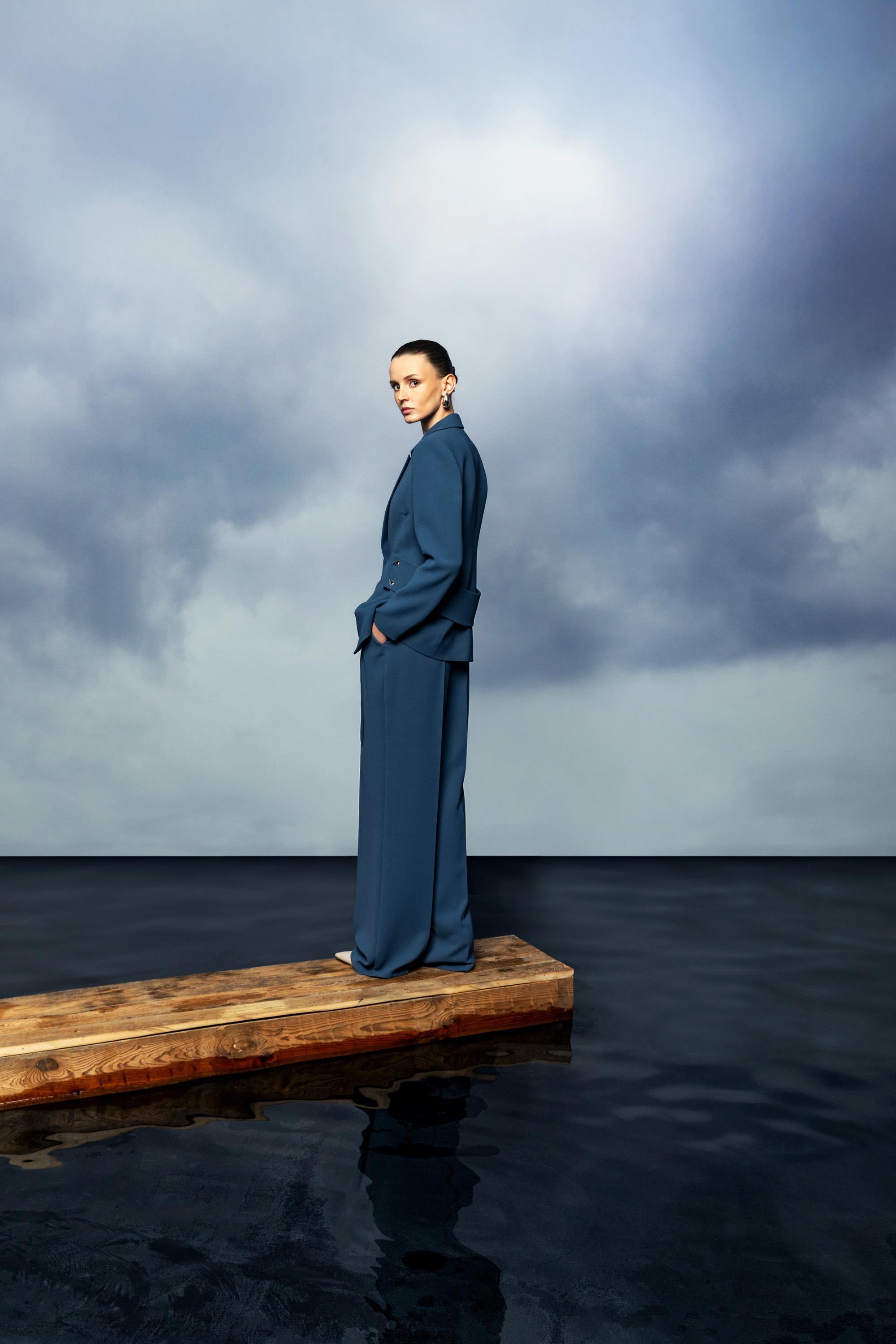 You can combine it with double-breasted blazer jackets, fabric trousers and classic shirts and wear it in business life or at official events. These combinations provide both a professional and stylish look.