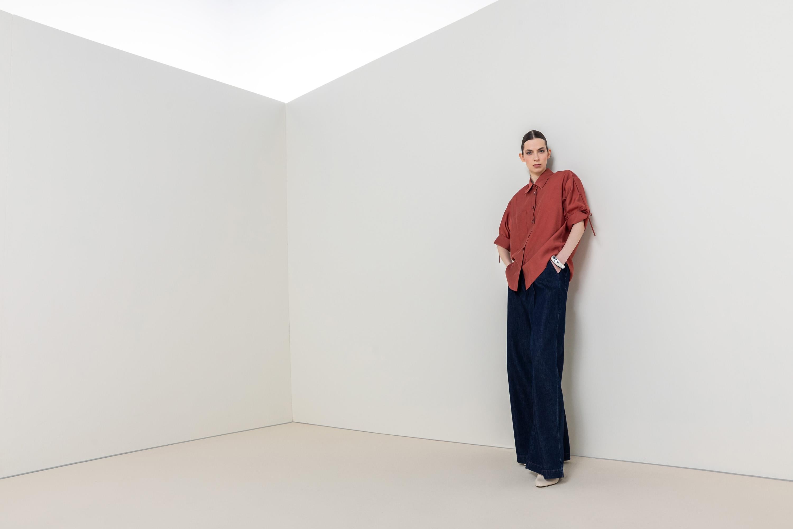 The sleeve-detail blouse, combining elegance and sophistication, will become one of the favorite pieces in your wardrobe. Featuring unique sleeve design details, this blouse completes your style for any occasion, from everyday outfits to special events. Its lightweight and breathable fabric ensures all-day comfort. Pair it with skirts, trousers, or jeans for a sophisticated and modern look.