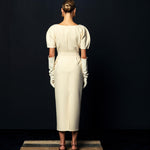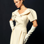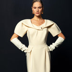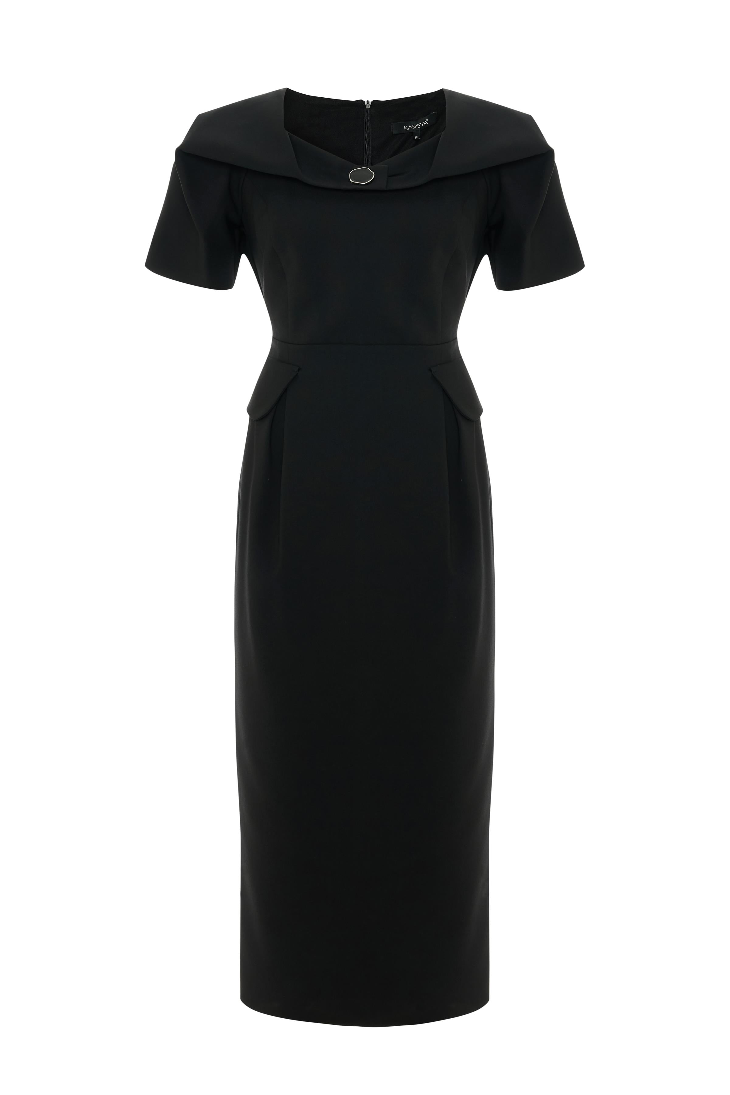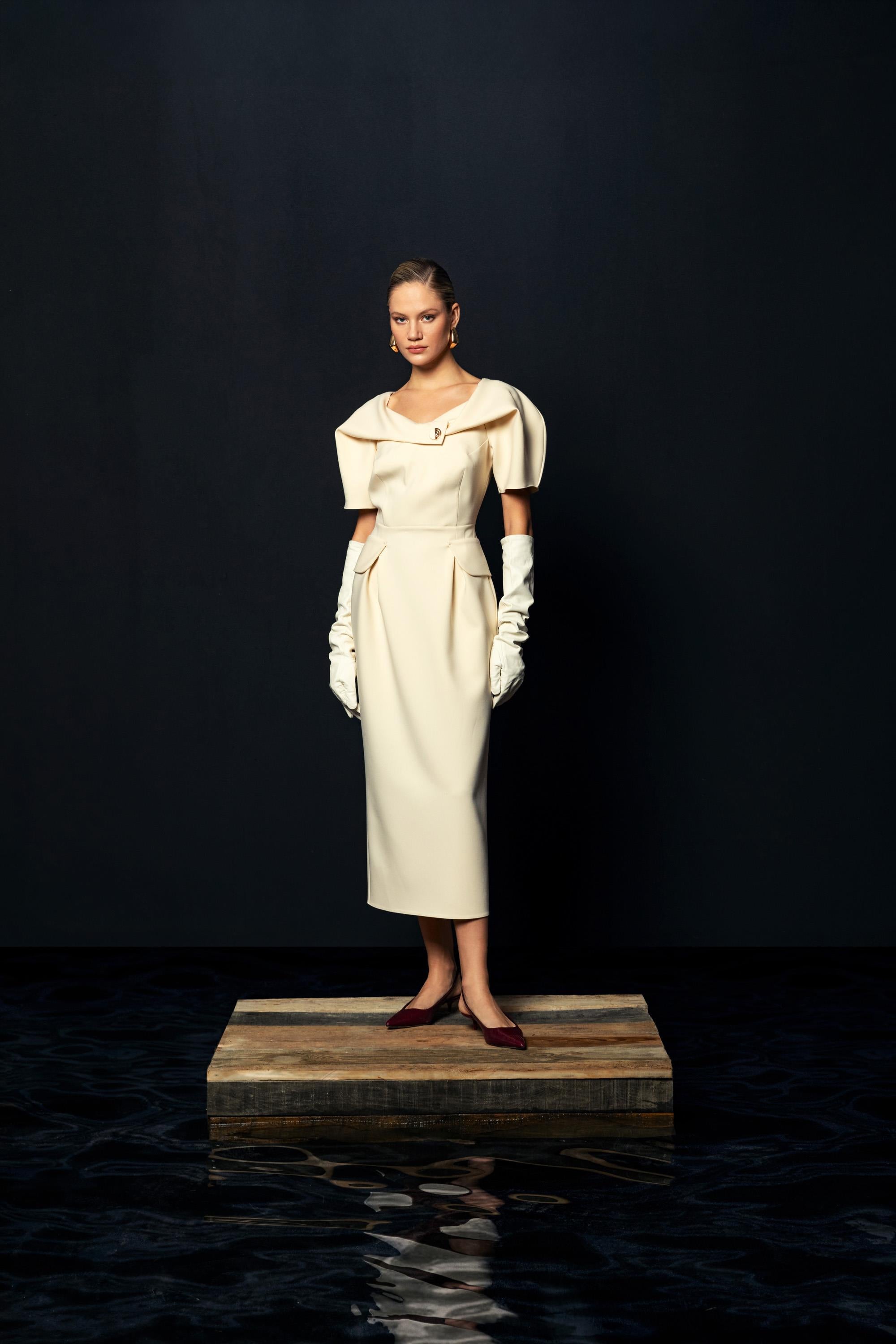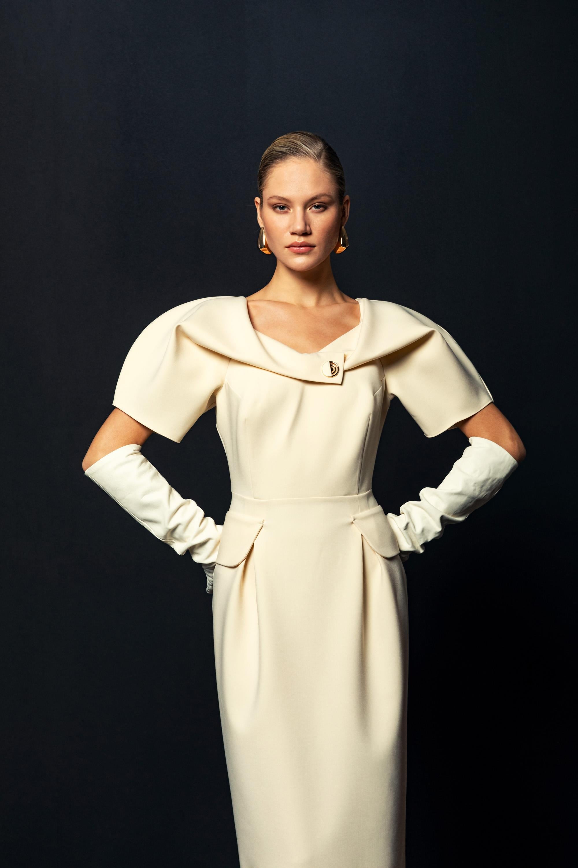 Featuring an elegant design, the dress with draped shoulder details offers a refined look with its modern lines. The draped shoulder design creates a feminine silhouette, making this dress perfect for both special occasions and everyday elegance.