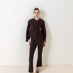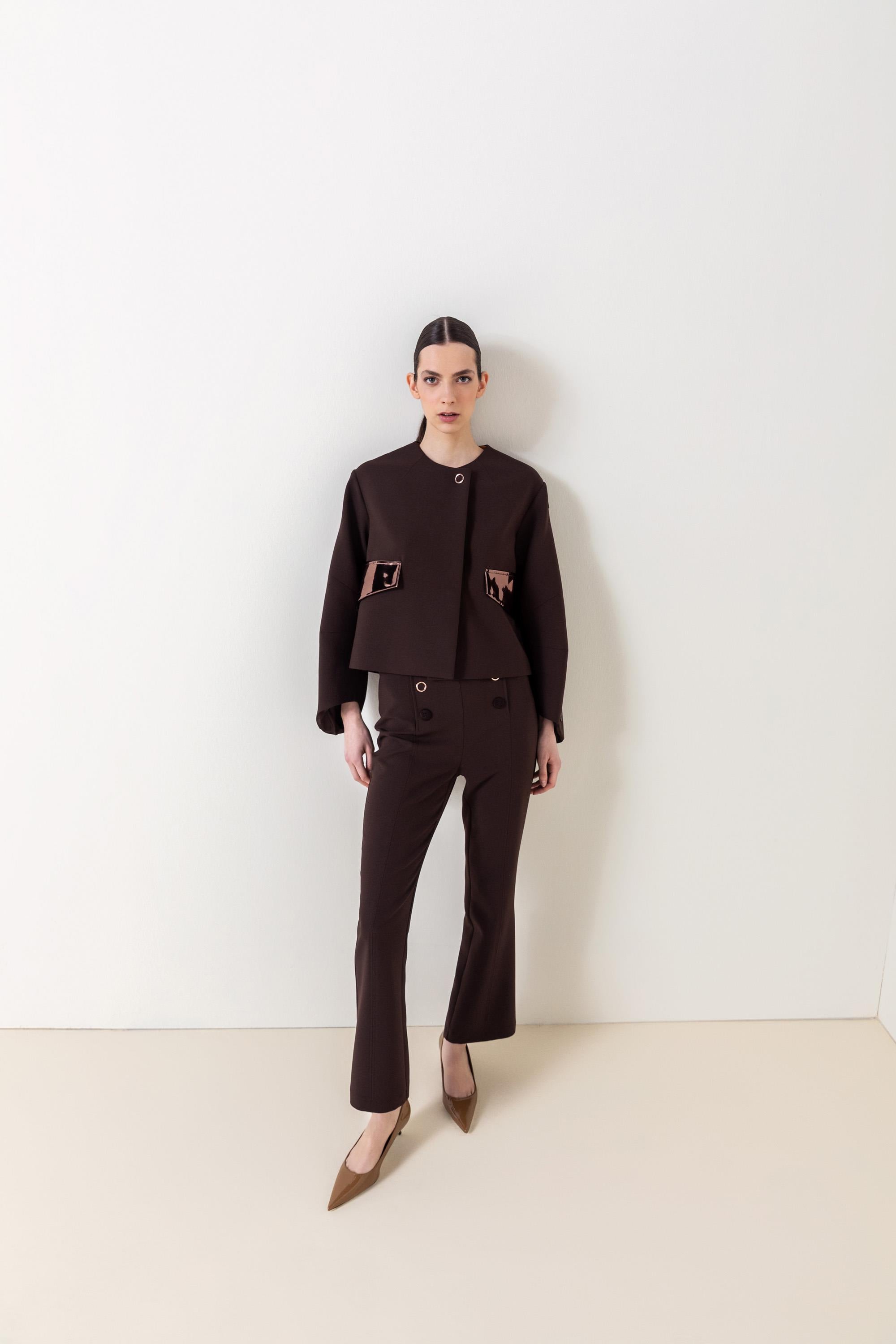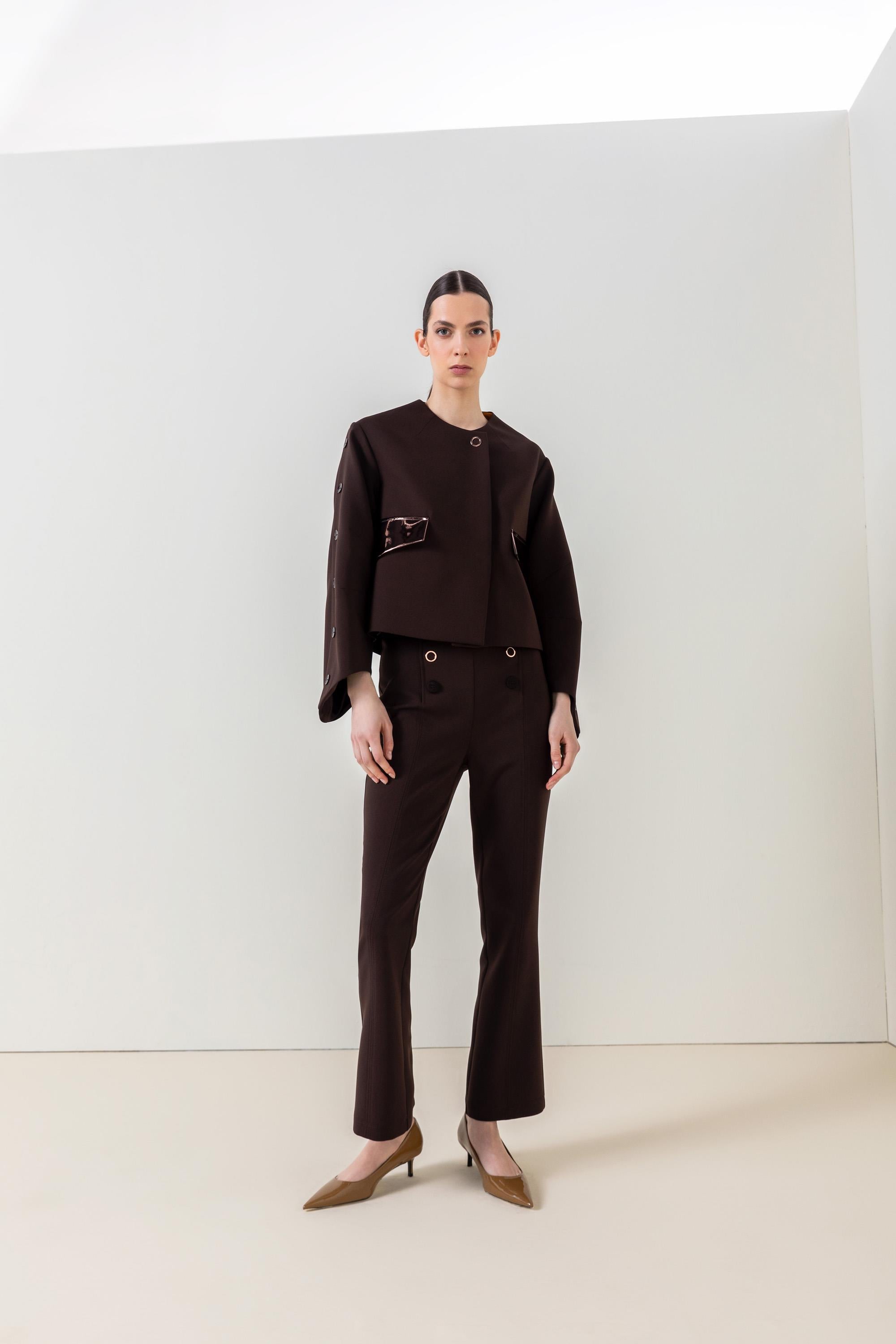 The button-detail cropped trousers highlight your style with their modern cut and elegant details. Their cropped length allows for easy pairing with both sneakers and heels. The button accents add a sophisticated touch, while the high-quality fabric ensures all-day comfort. A versatile piece, perfect for everyday wear or office chic looks.