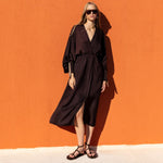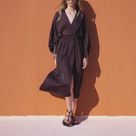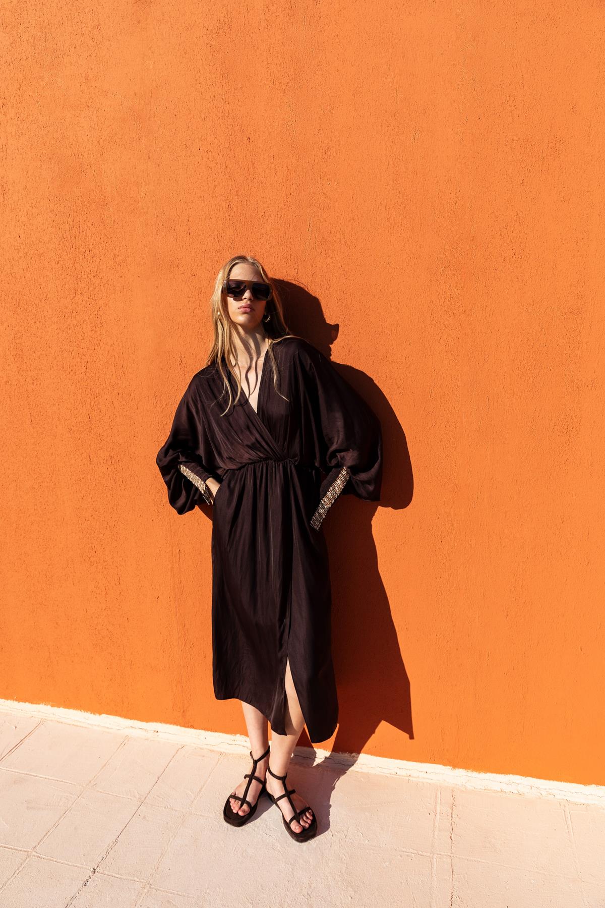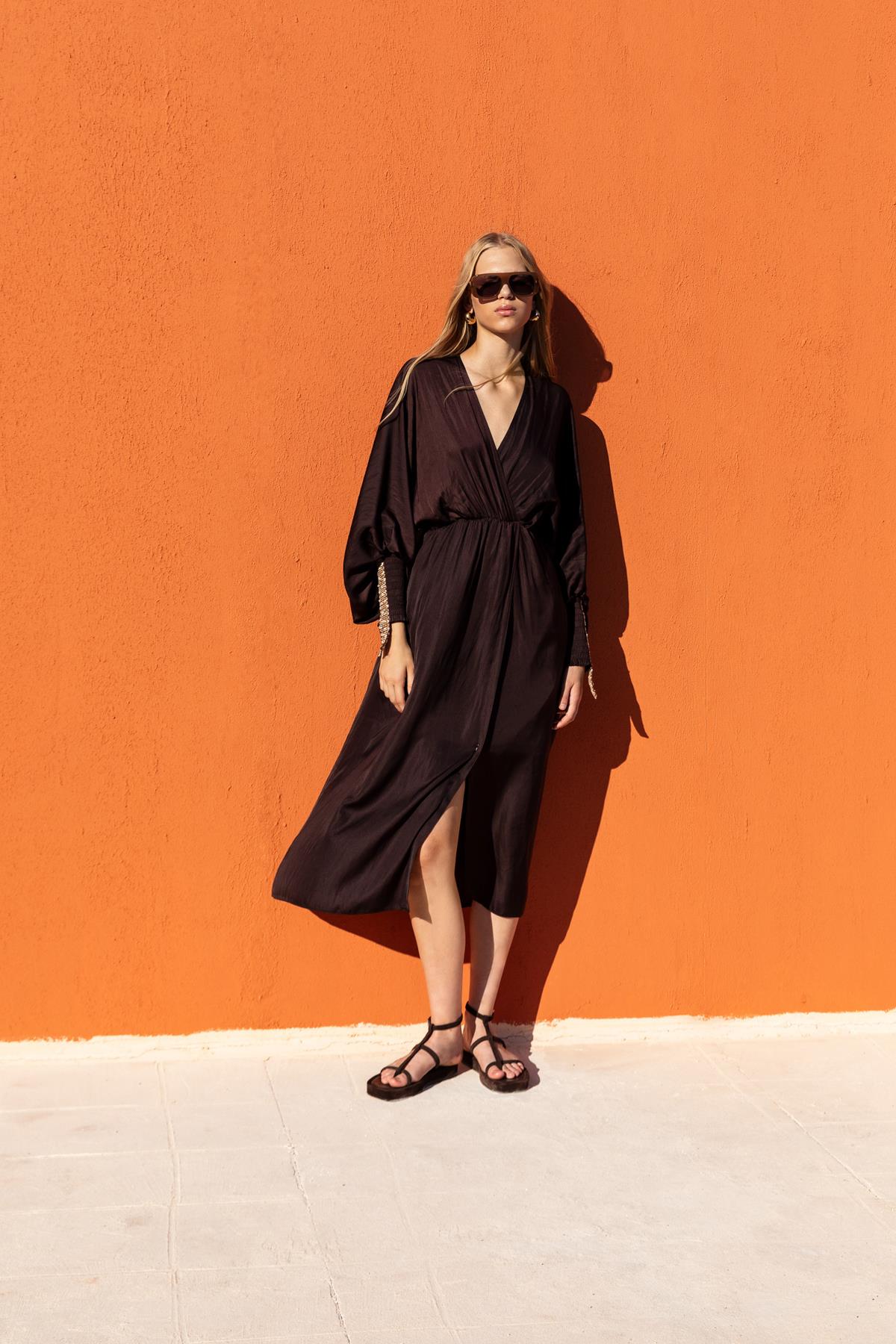 Taking its elegance one step further with its elegant sleeve embroidery, the double-breasted dress offers a feminine and sophisticated style. Its V-neck form and double-breasted cut that fits at the waist elegantly emphasize the body lines, while its light fabric provides comfort all day long. A powerful piece that can be preferred both on special occasions and at invitations.